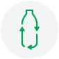Green recycled bottle icon representing the use of recycled materials.